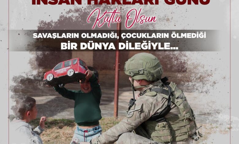 “İnsan hakları, barış ve özgürlük tüm insanlığın ortak değeridir. Bu değerlerin korunması için herkesin üzerine sorumluluk düşmektedir. Milli Savunma Bakanlığımızın insanlık vicdanına seslenen bu anlamlı mesajını yürekten destekliyoruz. Savaşların sona erdiği, çocukların güven içinde büyüdüğü, barışın hâkim olduğu bir dünya bütün insanlığın en büyük arzusudur.”