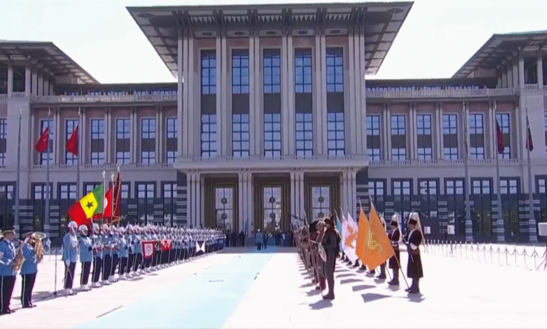 Cumhurbaşkanı Recep Tayyip Erdoğan, Senegal Başbakanı Ousmane Sonko’yu Cumhurbaşkanlığı Külliyesi’nde resmi bir törenle karşıladı. Törende, iki ülkenin milli marşları çalındı ve Cumhurbaşkanlığı Muhafız Alayı tarafından tüfekli gösteri yapıldı. Ayrıca, 16 Türk devletini temsilen bayraklar ve askerler de törende yer aldı, 21 pare top atışı gerçekleştirildi.